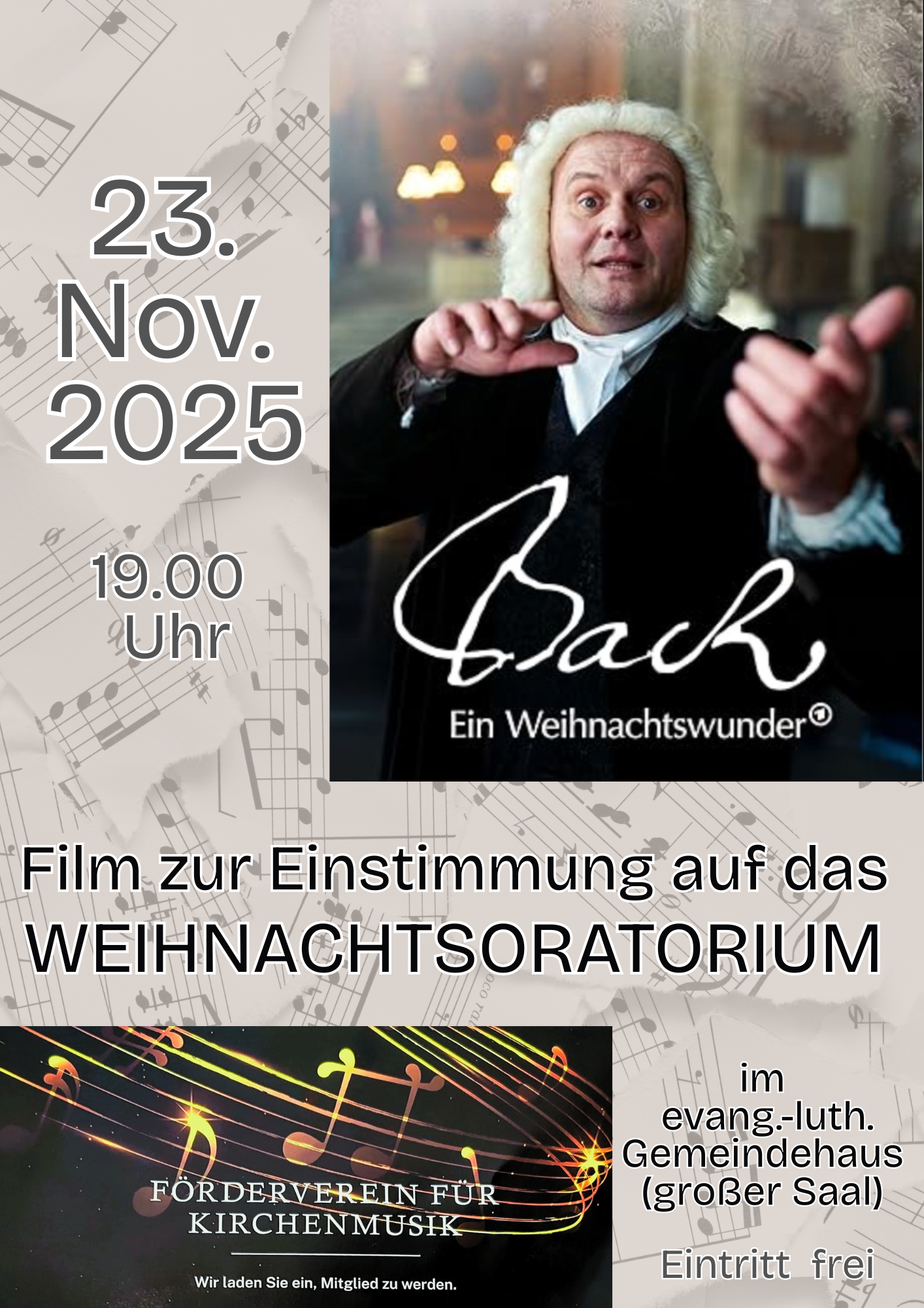 Highlights im November 2025 28. Oktober 202529. Oktober 2025 Karin Neuper-Schenkl Bachfilm zu Vorbereitung auf das Weihnachstoratorium Orgelandachten Advent 2025 Weihnachtsoratorium 30.11.2025 um 17 Uhr in der Stadtkirche